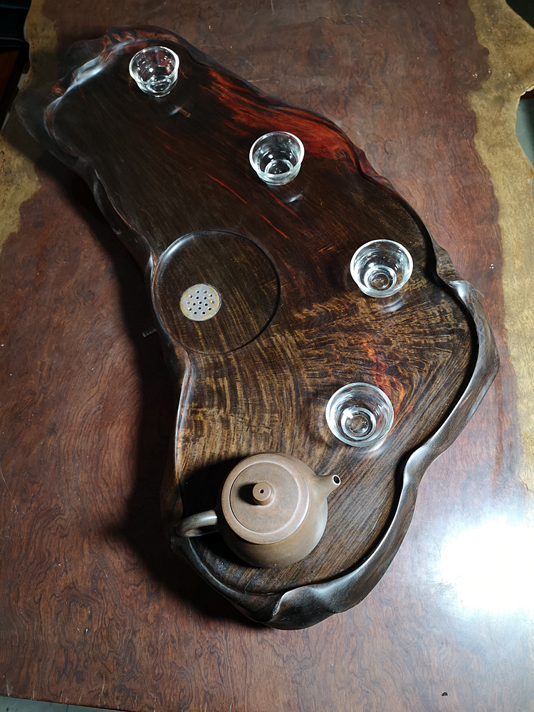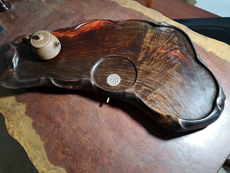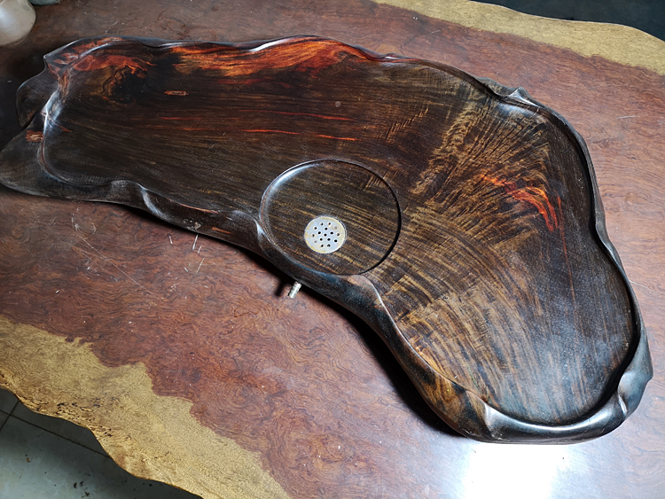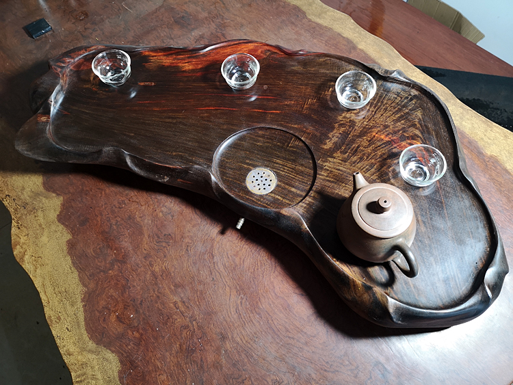 老挝大红酸枝茶盘 红酸枝精品水波纹茶盘 红木功夫茶盘