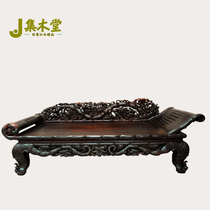 集红木 黑酸枝竹节贵妃床 红木贵妃床