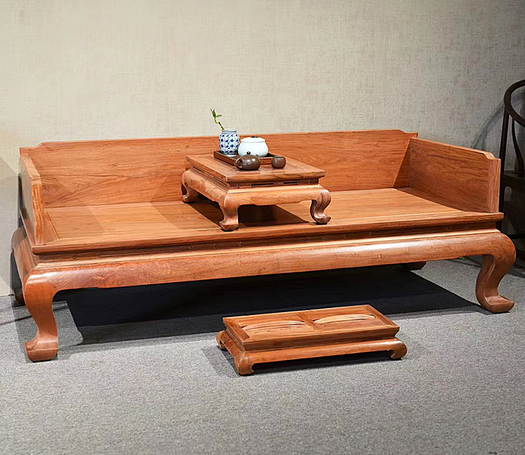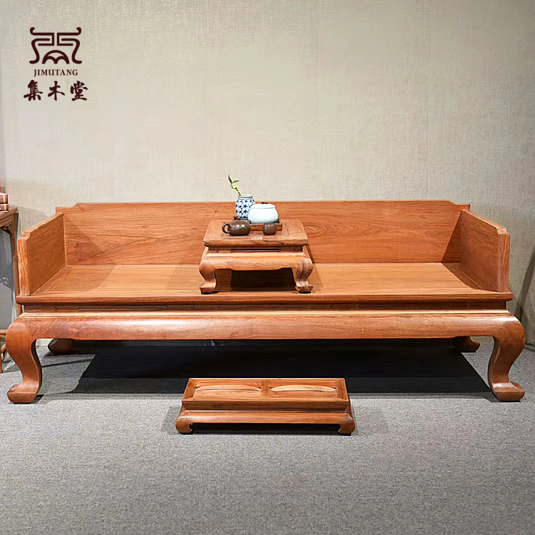 凭祥红木家具网集木堂缅甸花梨罗汉床三件套 大果紫檀红木罗汉床