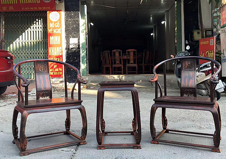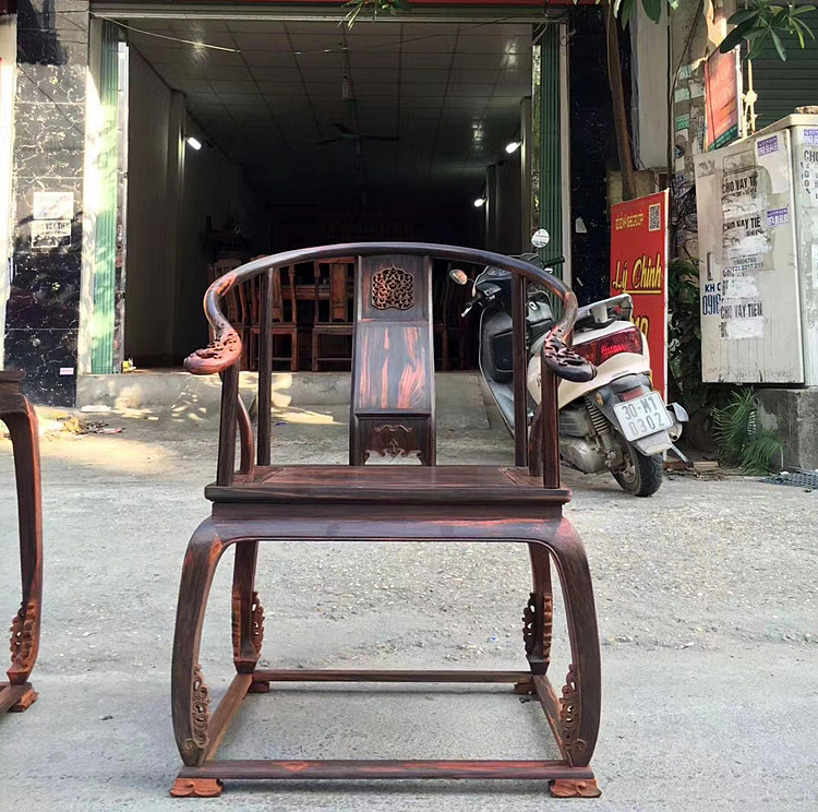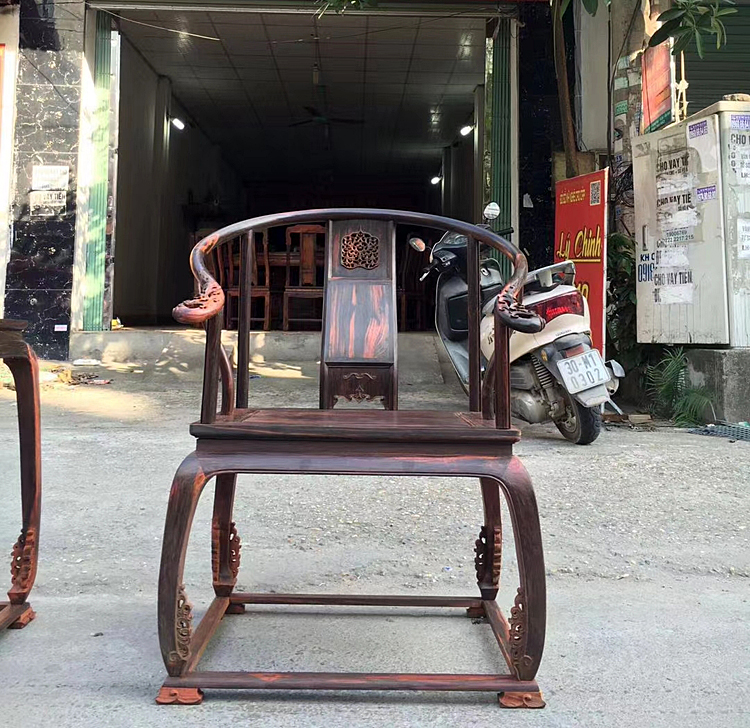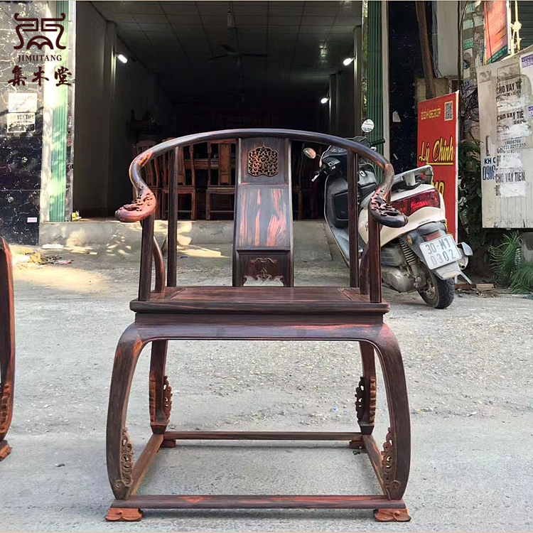 越南红木家具代购 老挝大红酸枝皇宫椅半成品三件套