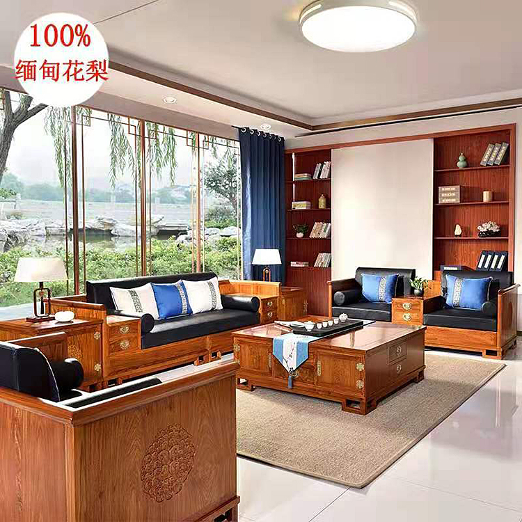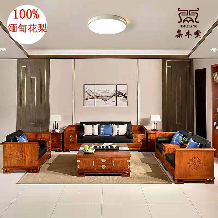 缅甸花梨新中式沙发 大果紫檀红木沙发凭祥红木家具网集木堂精品推荐