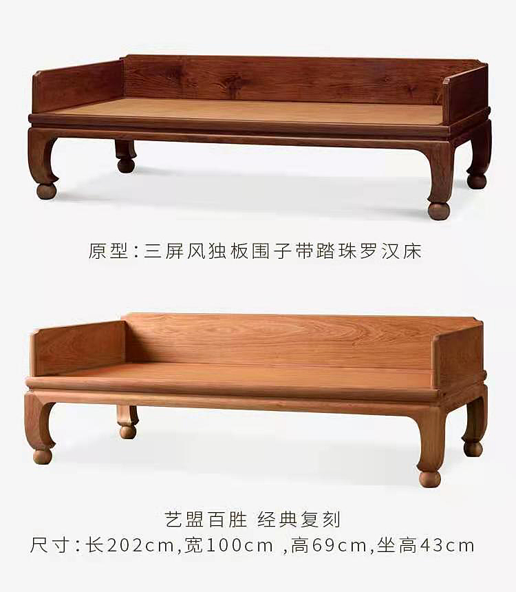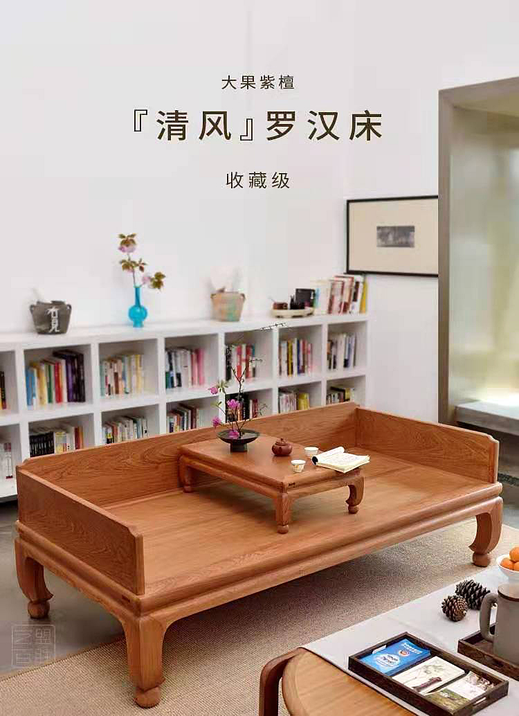 缅甸花梨清风罗汉床 大果紫檀三围独板带踩珠红木罗汉床 凭祥红木家具集木堂精品推荐