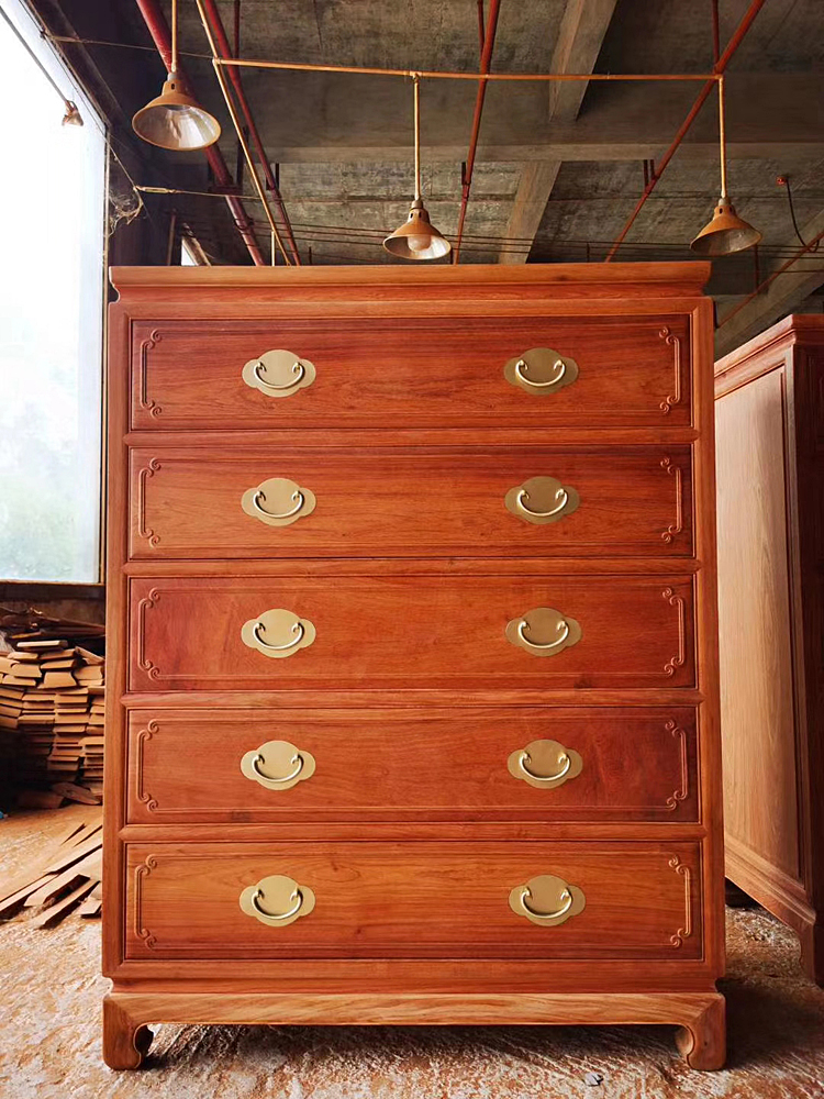 缅甸花梨五斗柜 大果紫檀红木储物柜 凭祥红木网精品推荐