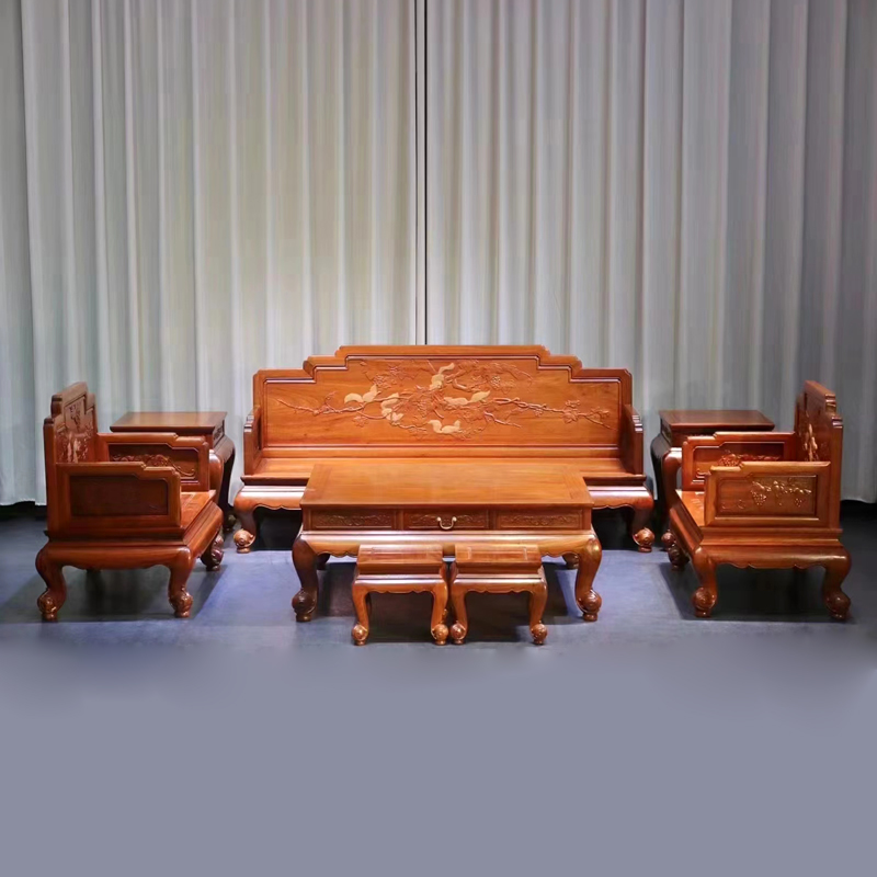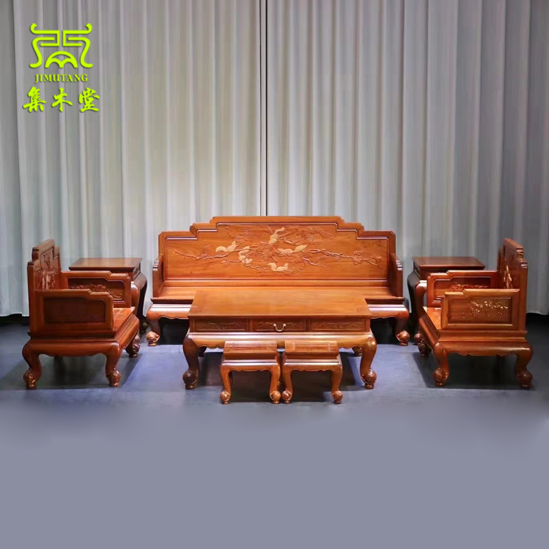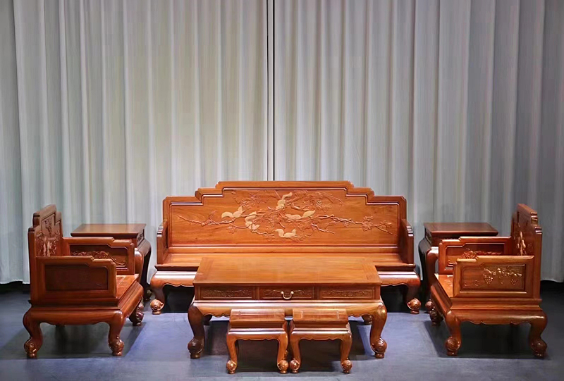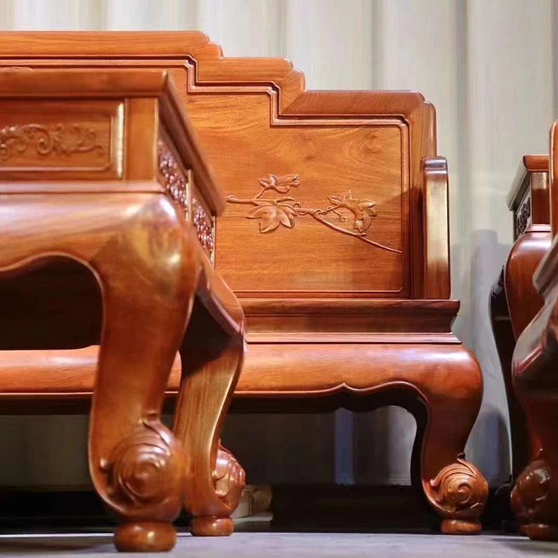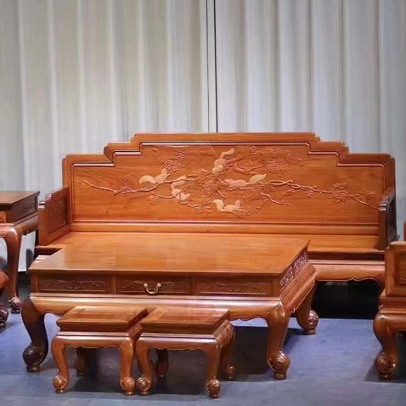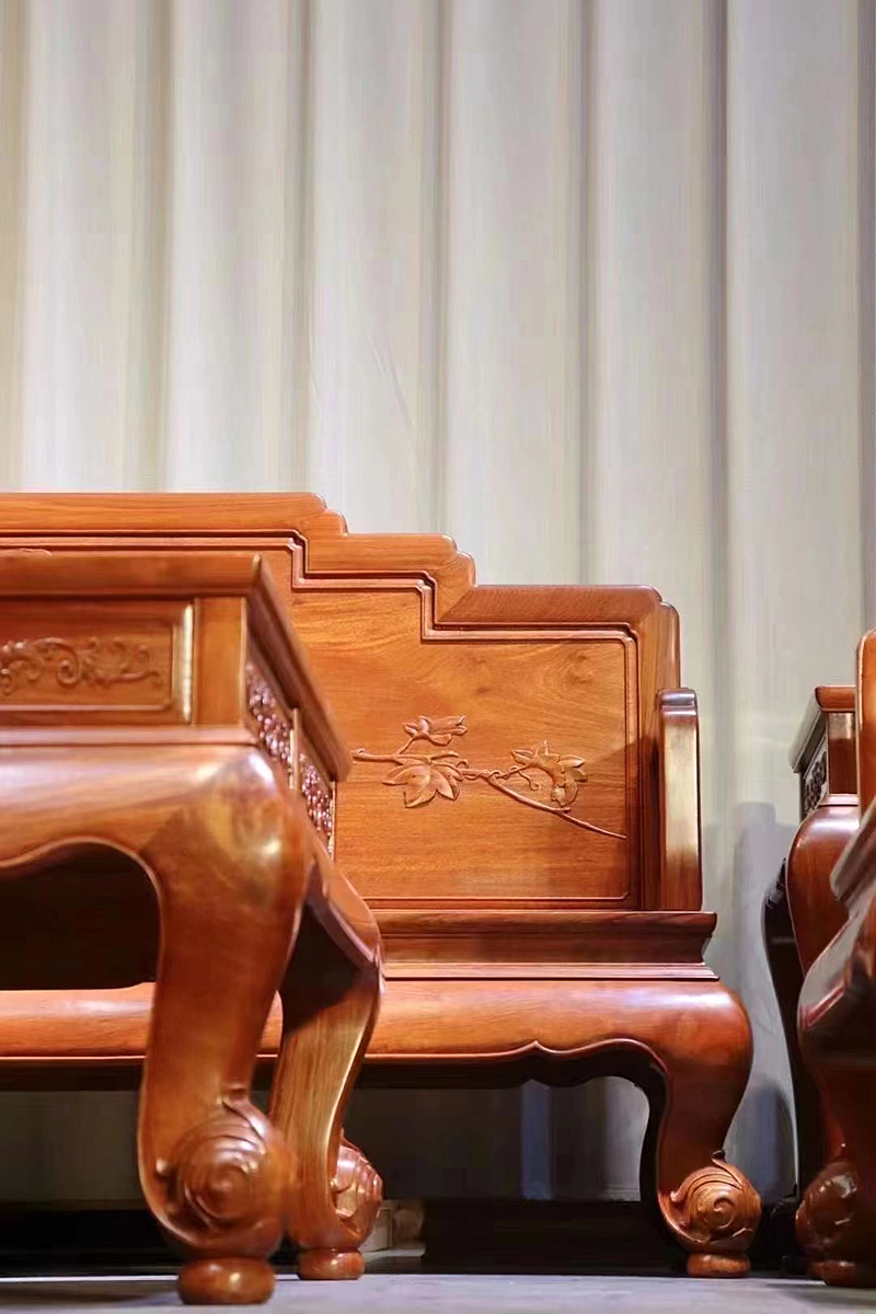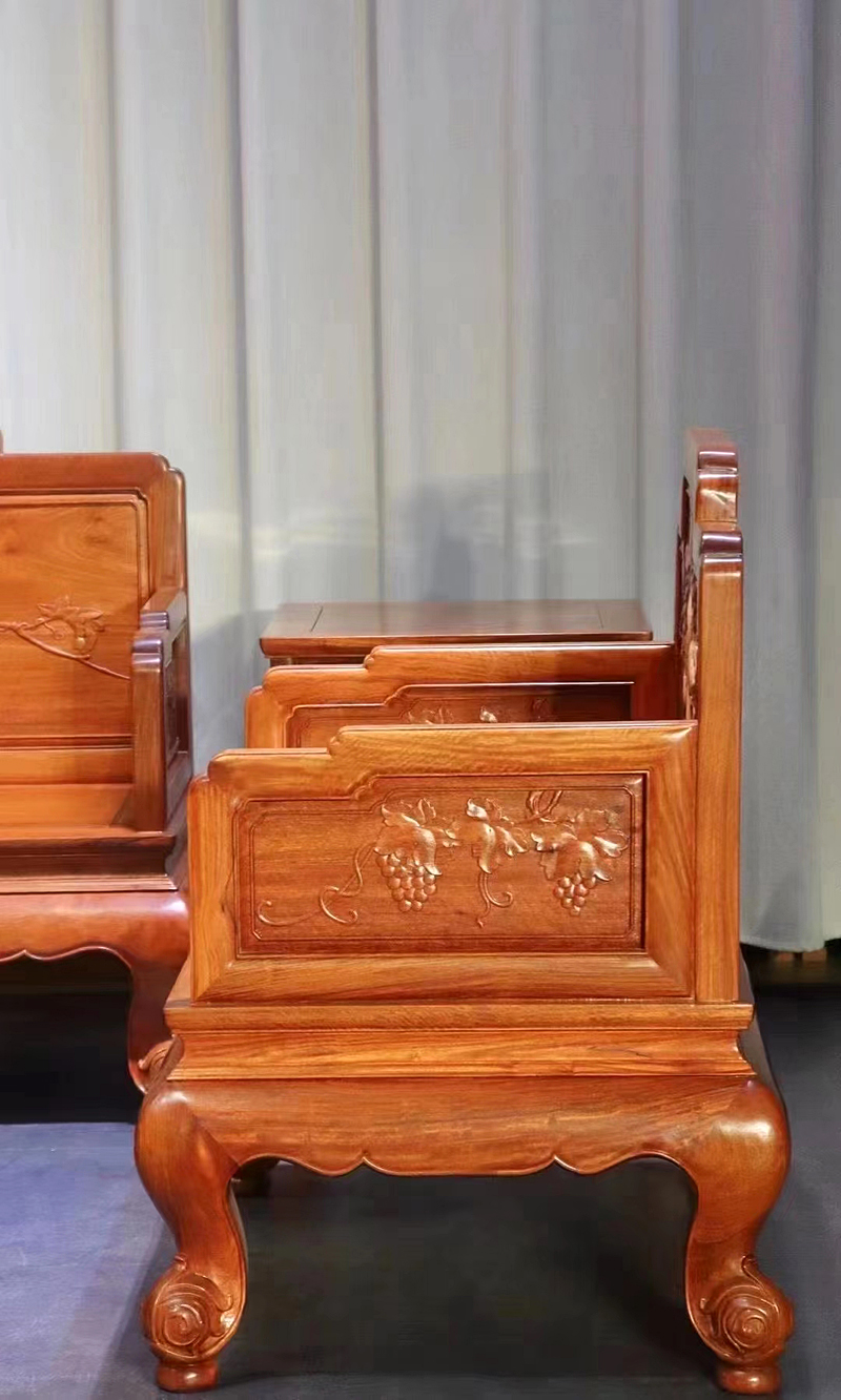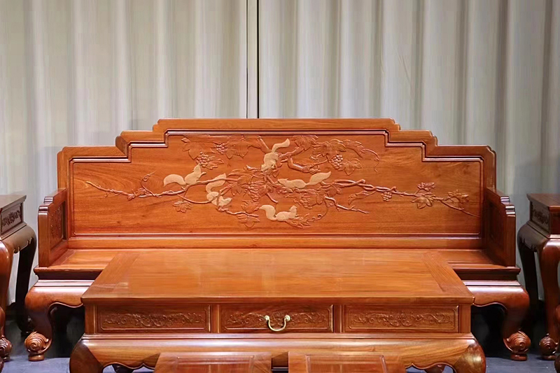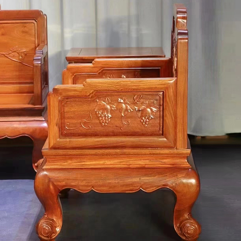 凭祥红木家具网缅甸花梨松鼠葡萄沙发八件套正宗大果紫檀全榫卯檀雕工艺