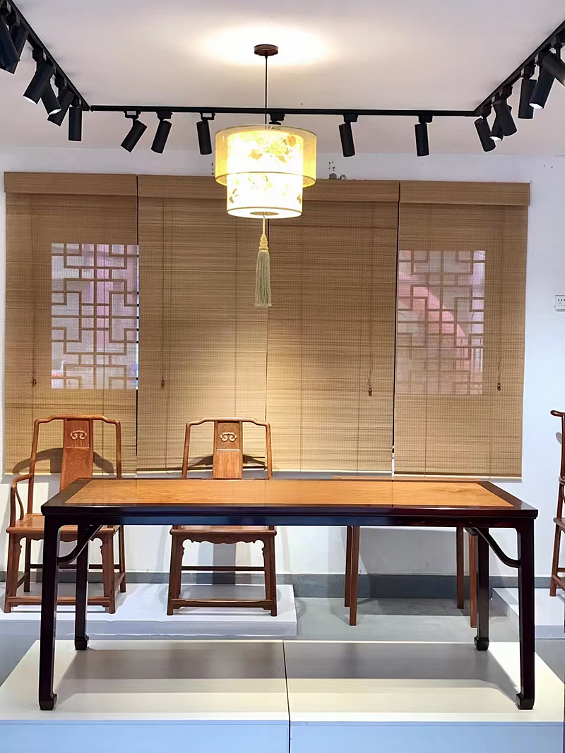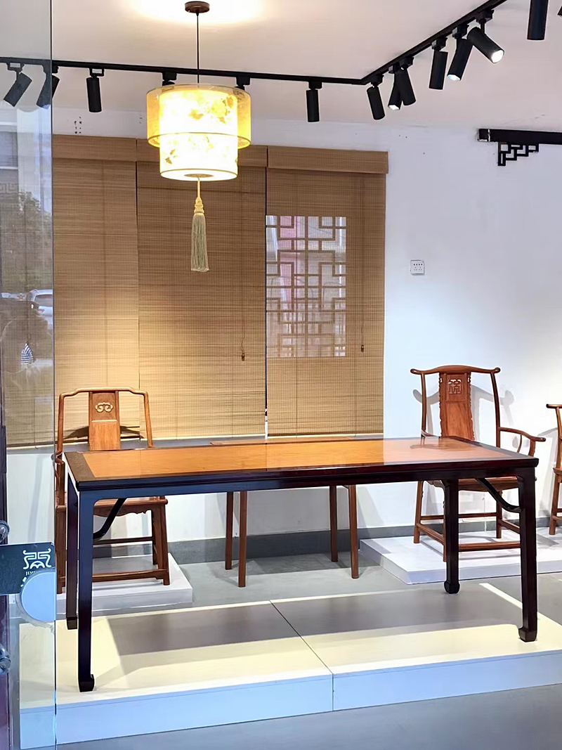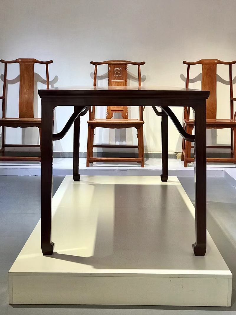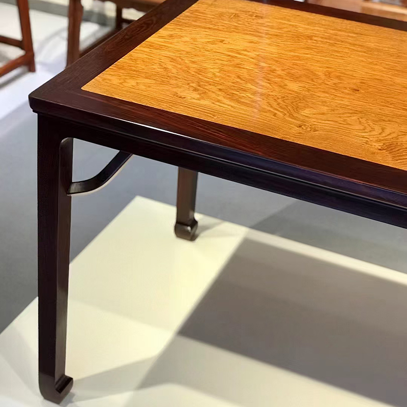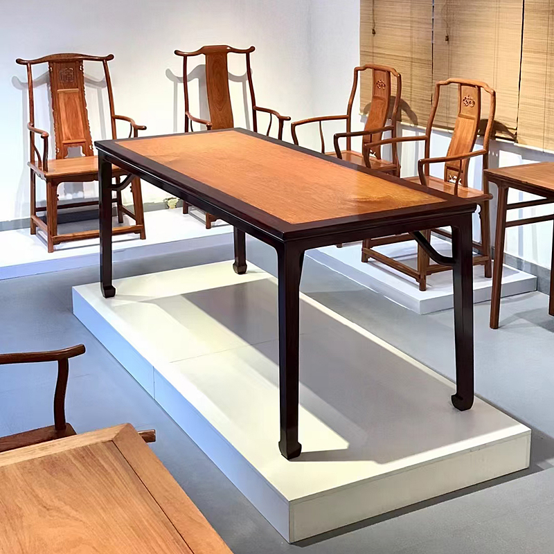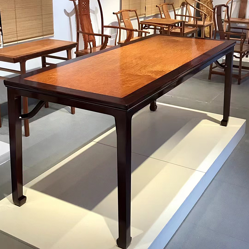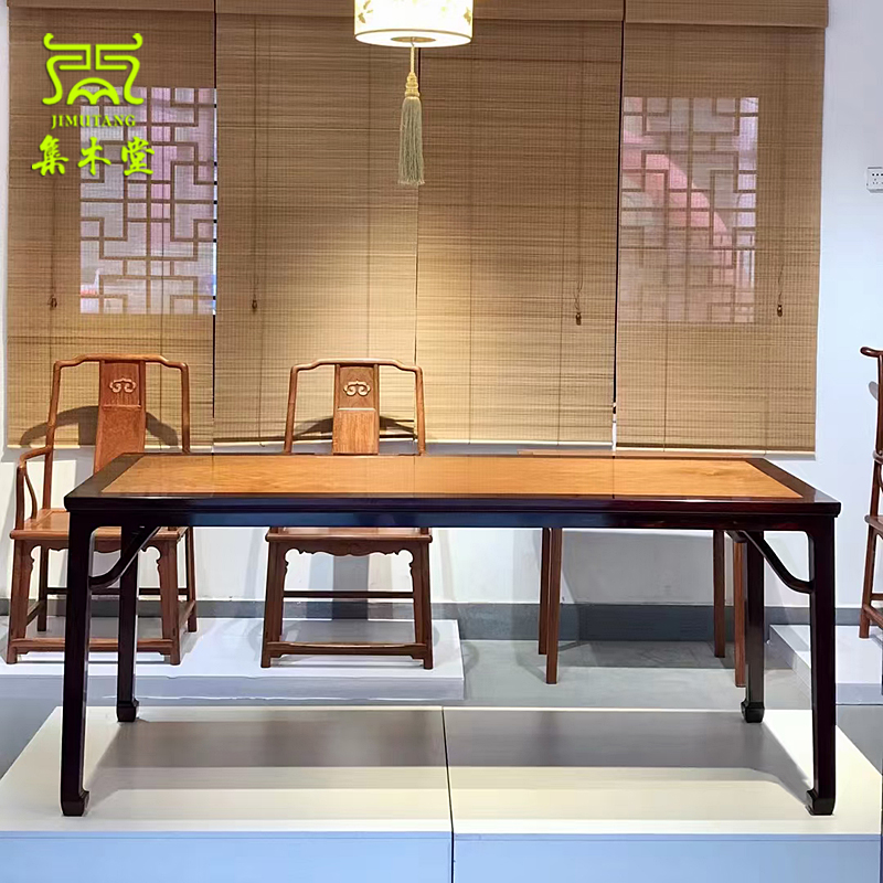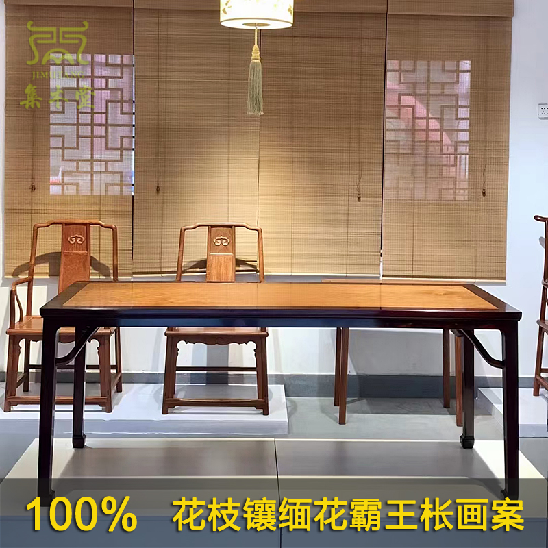 凭祥红木家具网集木堂精品红木推荐花枝镶缅甸花梨霸王枨画案生漆工艺