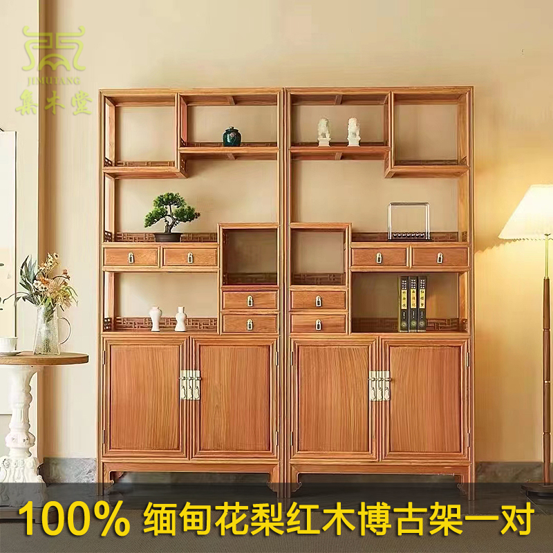 凭祥红木家具精品推荐缅甸花梨榫卯工艺博古架一对