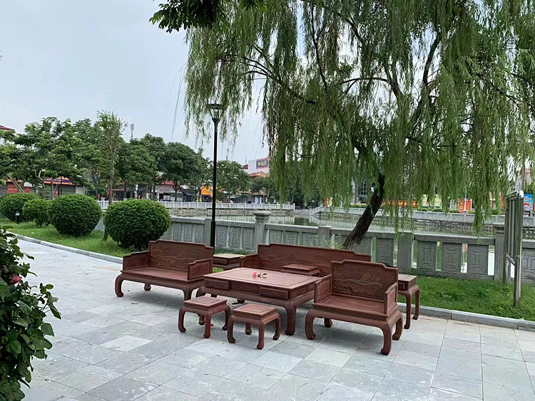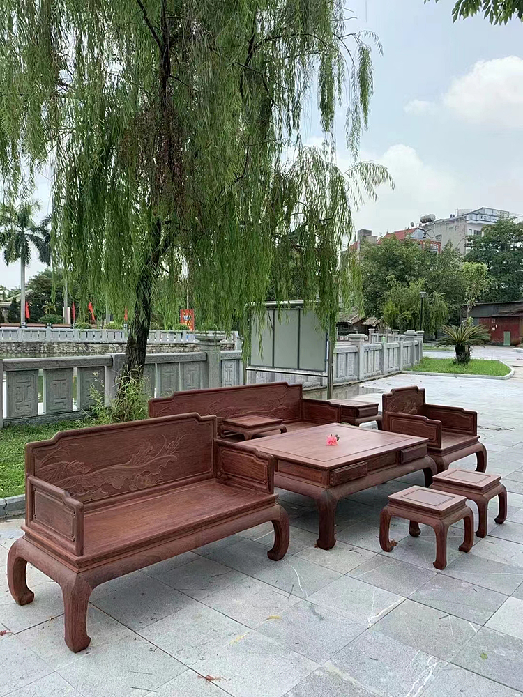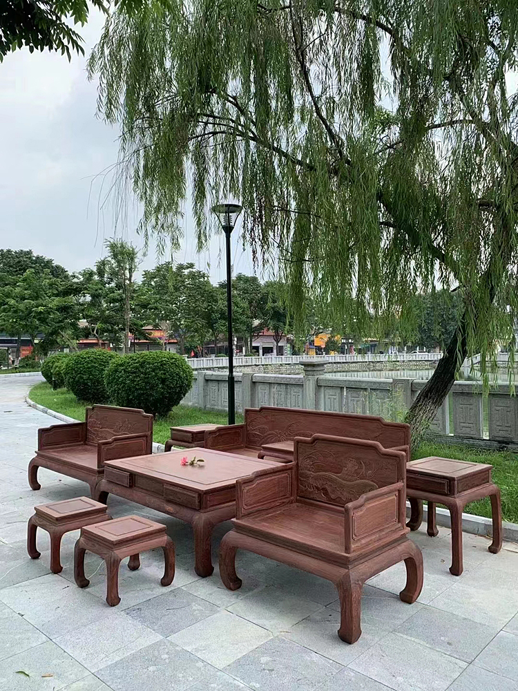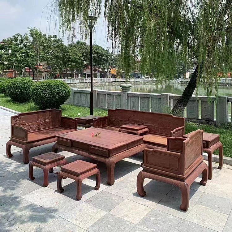凭祥红木网老挝大红酸枝荷韵宝座红木沙发半成品六件套