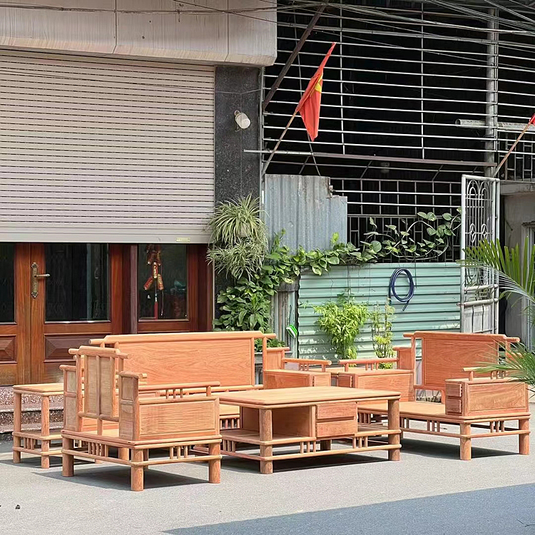凭祥红木网缅甸花梨新中式沙发六件套半成品