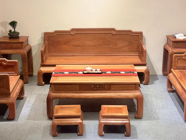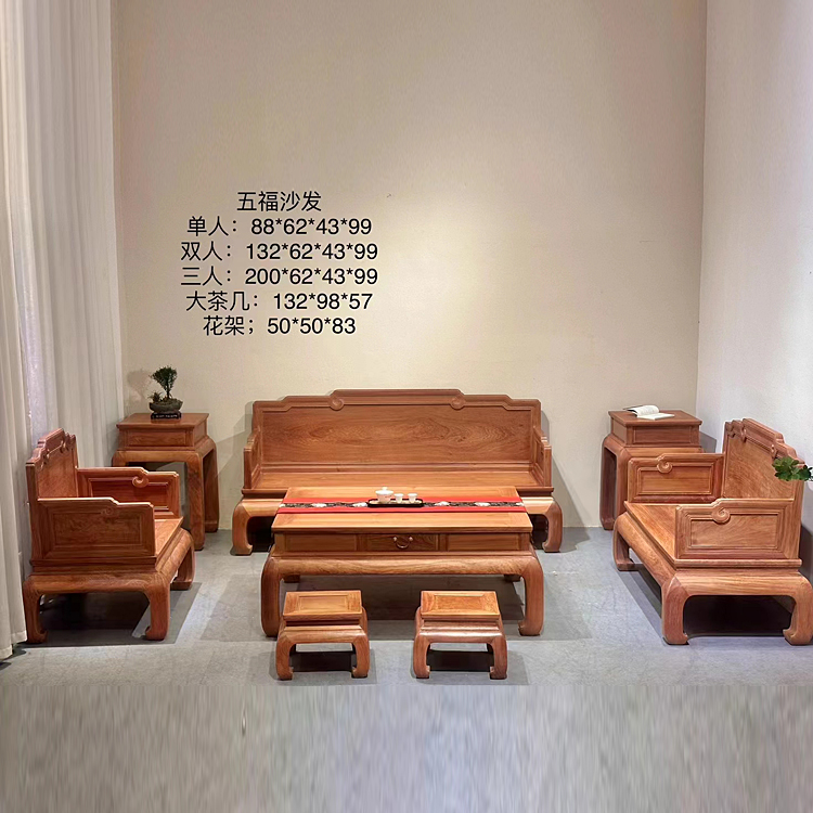 凭祥红木家具精品推荐缅甸花梨五福沙发八件套