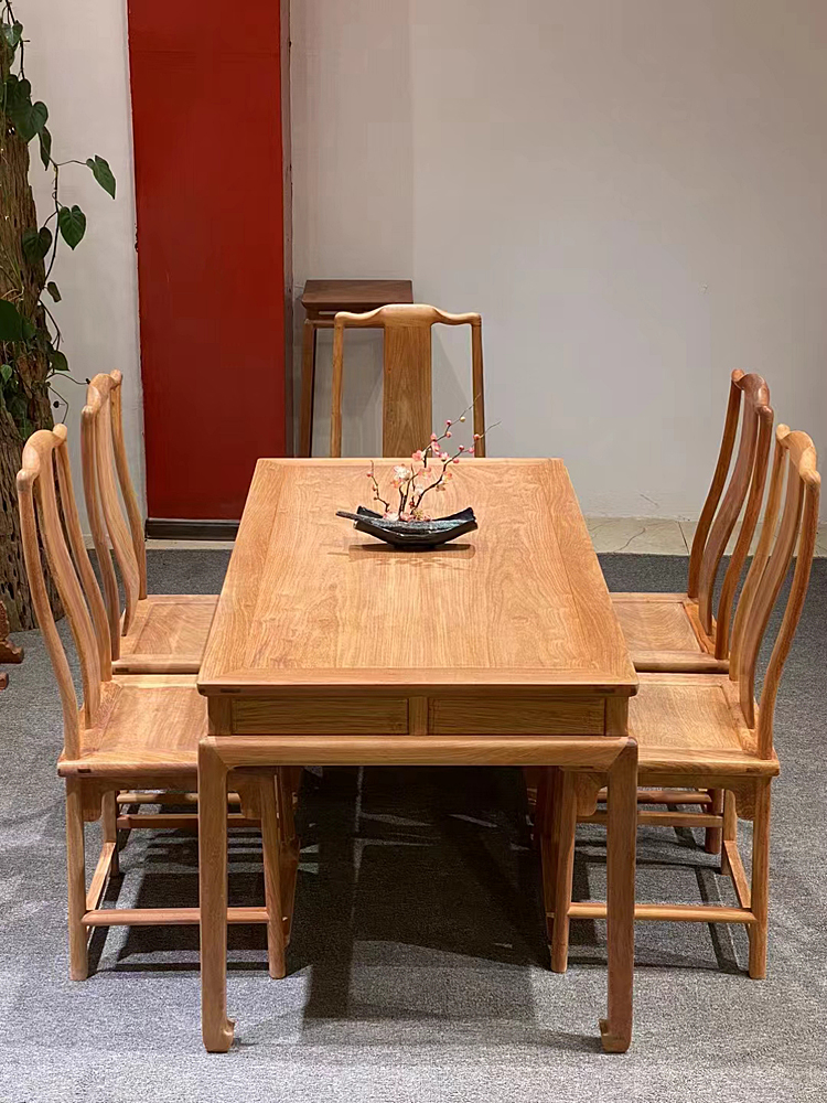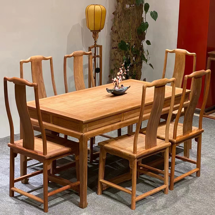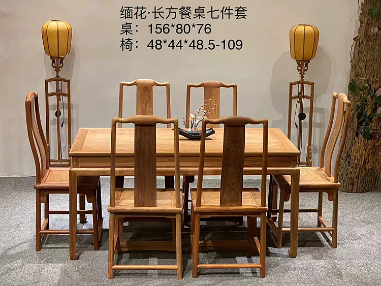 凭祥红木网缅甸花梨霸王枨方餐桌七件套