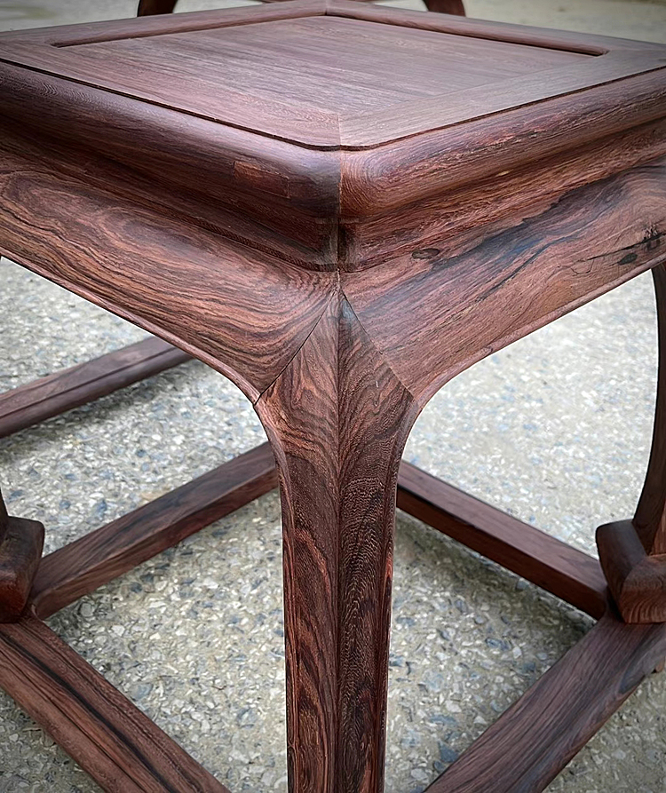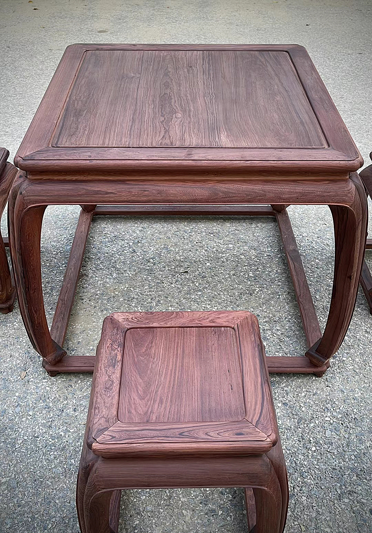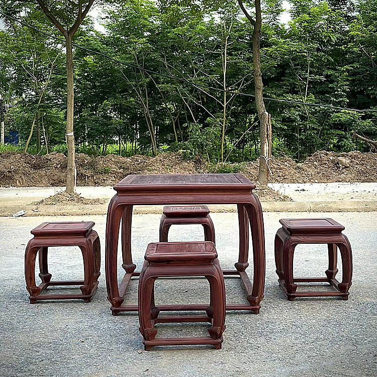凭祥红木家具网白酸枝鼓腿彭牙休闲桌五件套