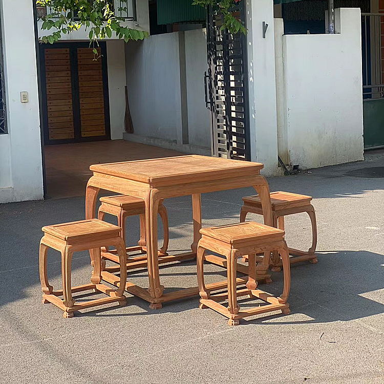凭祥红木家具缅甸花梨大果紫檀鼓腿彭牙休闲桌餐桌五件套