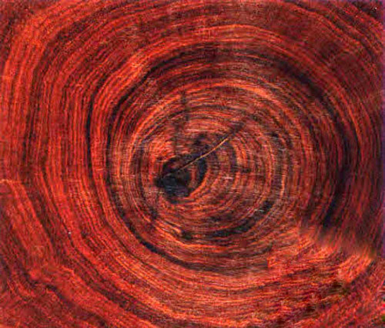 巴里黄檀(花枝)中国北方称之为“老红木”,广东、广西称之为“酸枝”,《国家红木标准》定为“红酸枝”,红酸枝为豆科檀属木材,是红木国标5属8类33种红木之一。因新切面有酸枝木特有的酸香气,故称之为酸枝。心边材区别极明显,边材灰白至灰褐色,宽2~3 cm;心材显现玫瑰黄色、红褐色、灰紫褐色,常有宽窄不等的黑色或紫黄色带状条纹,本种木材商业等级的划分就是依据其外观色泽而定。木材为散孔材。纵剖面上管孔槽不甚明显。生长轮略明显,晚材带色深。管孔宏观在肉眼下可见,微观下可见多数单独及少数短径列复管孔(2~9 个),横切面近卵圆形,甚少至略少,略小至中.太小不一致分布欠均匀,散生;心材管孔内富含褐色树胶,单穿孔。胞间道未见。